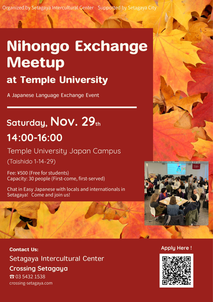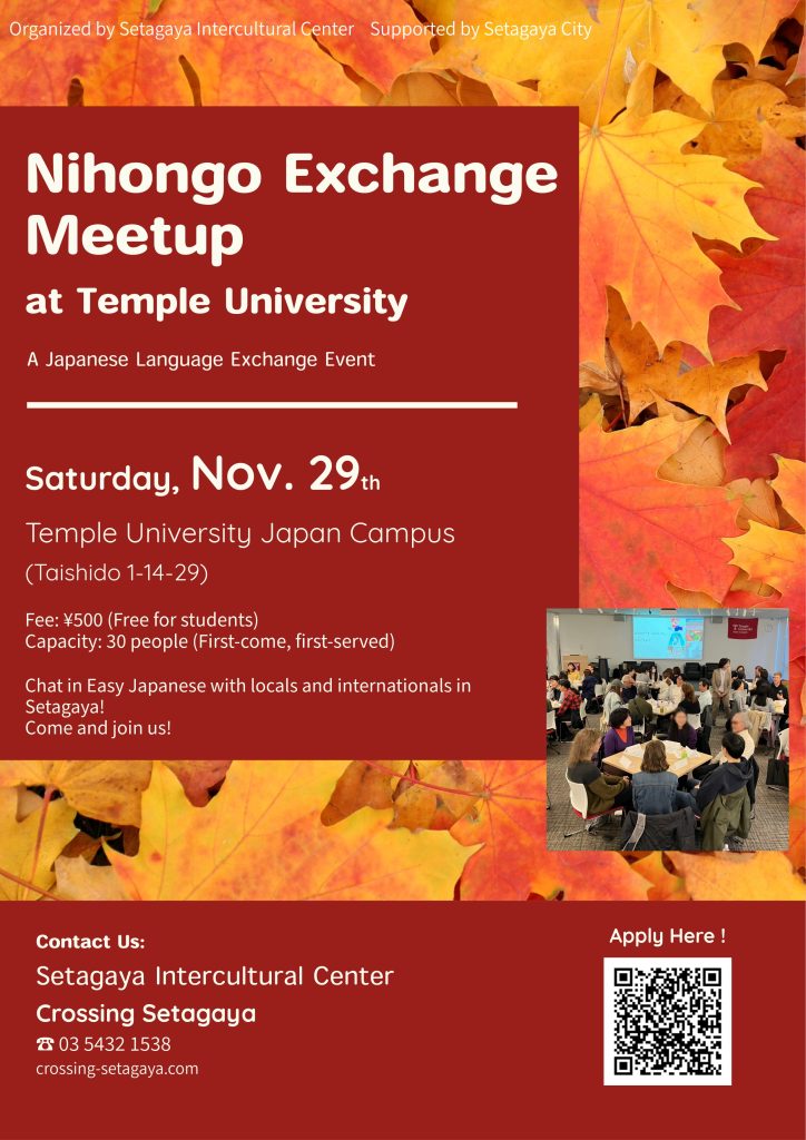 This event brings together Japanese and international residents of Setagaya to interact using Easy Japanese.
