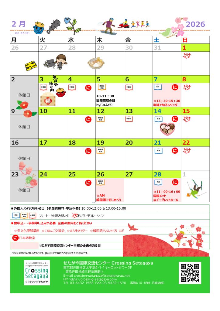 2026年のイベントカレンダーです。