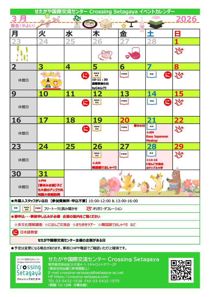 2026年3月のイベントカレンダーです。